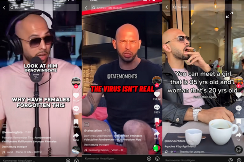 Hate Speech muss jedoch nicht immer auf einzelne Frauen abzielen. So sorgte dieses Jahr etwa der amerikanisch-britischen Influencer und ehemaligen Kickboxer Andrew Tate mit Frauenhass und radikalem Gedankengut für Schlagzeilen. Trotz seiner kontroversen Aussagen erreichte der mittlerweile wegen Menschenhandels verhaftete Tate auf TikTok 5,7 Millionen Follower. Zu seinen Aussagen zählte etwa der folgende Satz: "Meine Weiber reden nicht mit anderen Männern, mögen nicht andere Männer. Meine Weiber gehen nicht ohne mich in den Club, sie sind zu Hause."