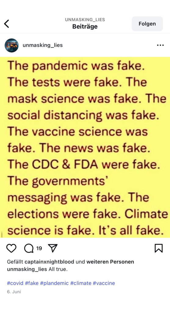 Screenshot des Instagram-Posts von @unmasking_lies, abgerufen am 25.06.2025